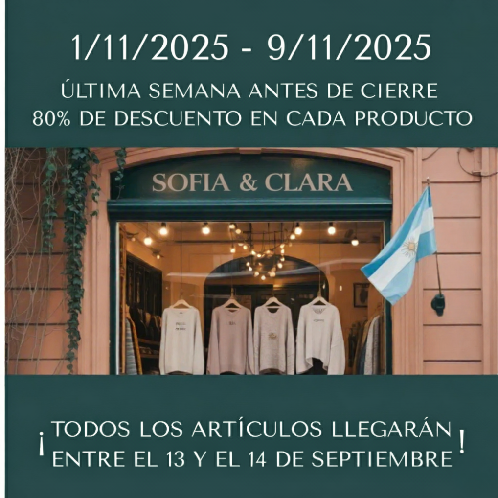 Gracias por acompañarnos durante este increíble viaje. Después de mucho tiempo ofreciendo lo mejor de nuestra colección, hemos llegado al final de una etapa. Nos vemos obligadas a cerrar, y esta es tu última oportunidad para llevarte algo con hasta un 80% de descuento.